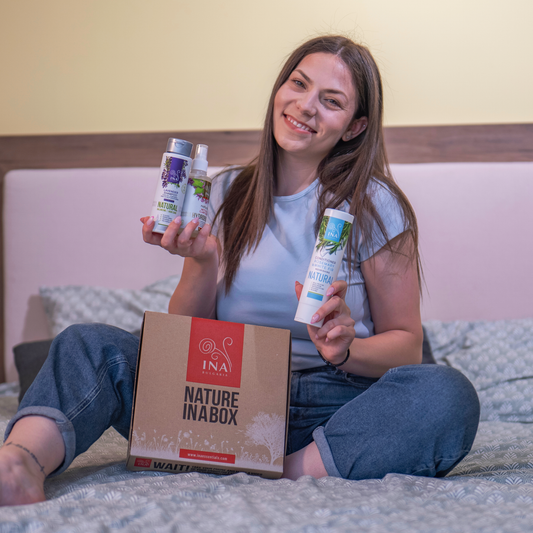 Enjoy a complete experience with InaEssentials products. Our InaEssentials natural products arrive in a Nature INA Box - a customized designer recycled cardboard box that conveys our family's history and values - caring for nature and caring for You, our customers.