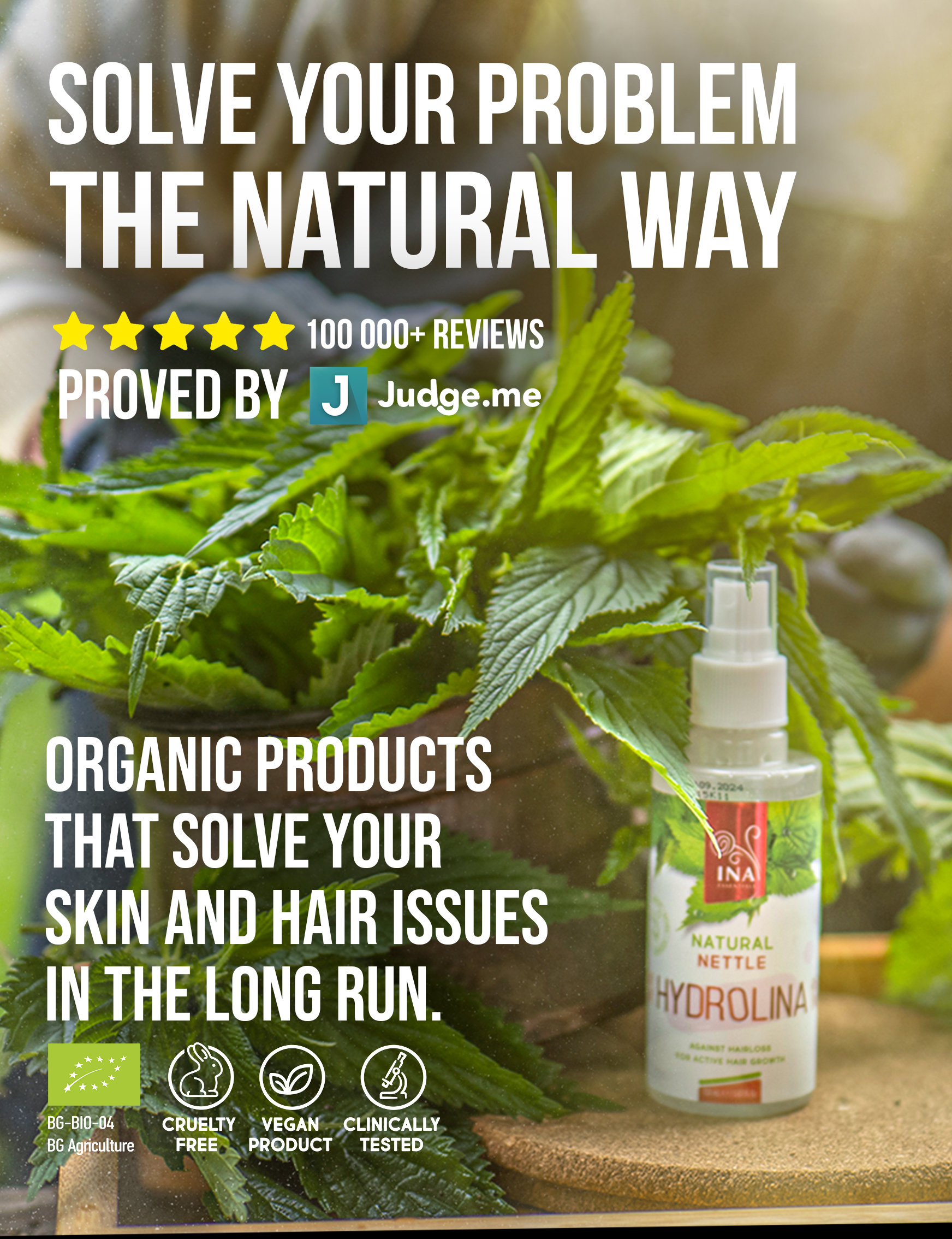 Wild Nettle Water - Hydrolina - Hair spray for Hair loss and Oily hair