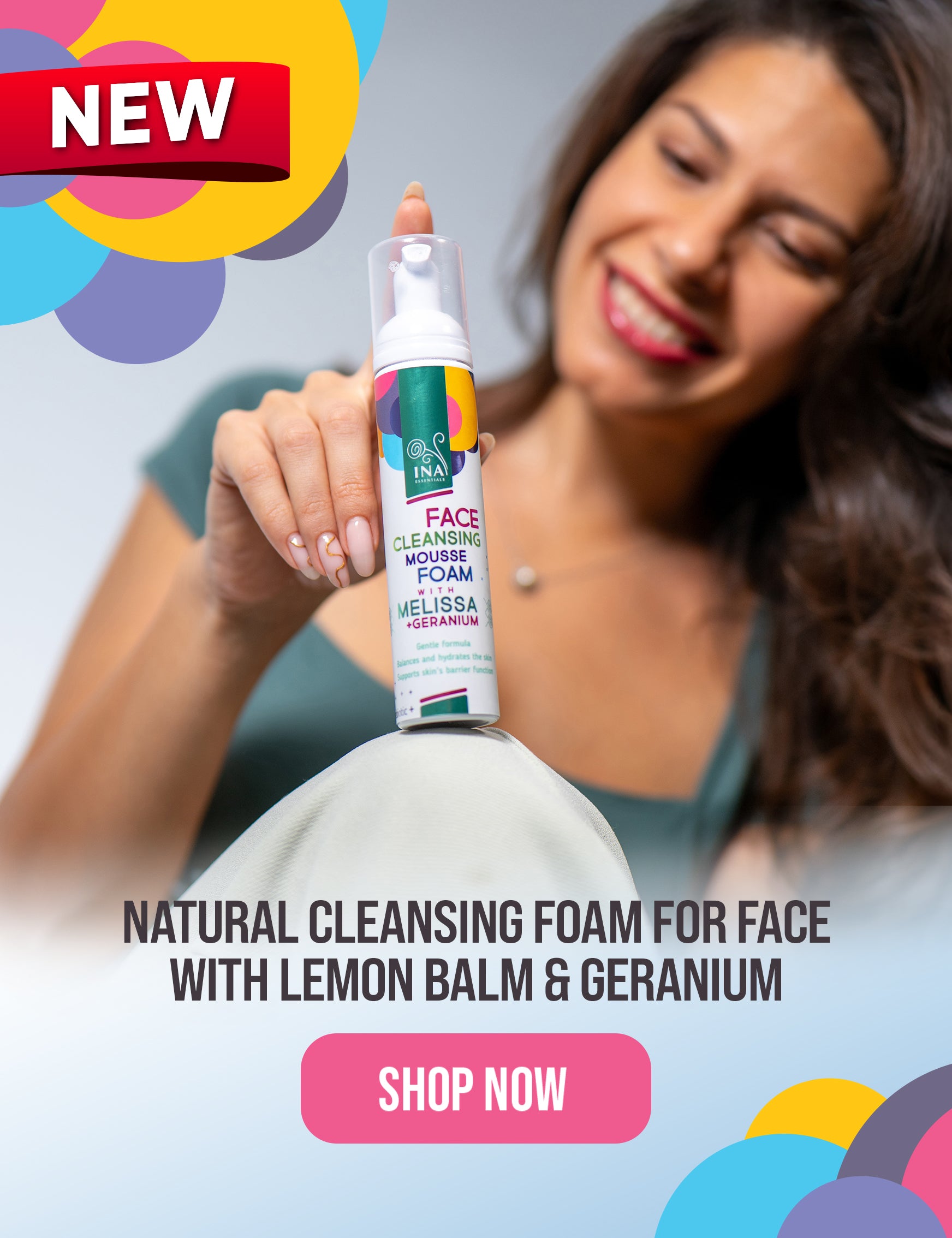 Natural Cleansing Foam for Face with Lemon Balm and Geranium - for every skin type