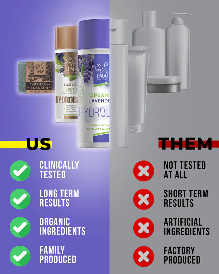 The promo set contains: 3 x Organic Lavender water - Hydrolina with anti-acne effect - 150ml (Hydrolat)
