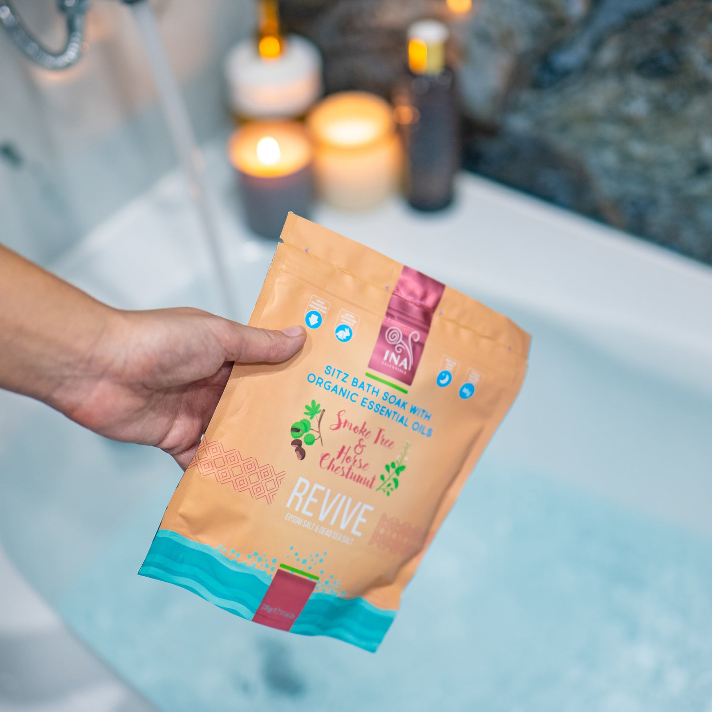 Revive – InaEssentials bath salts relieve and support the regeneration of skin tissues. An extremely suitable formula for varicose veins, hemorrhoids, tears and postpartum care.