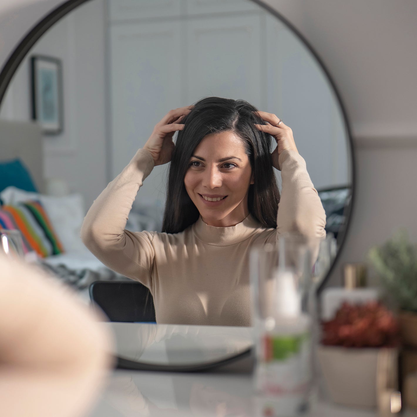 Spray liberally into the hair roots and rub into the scalp with gentle massaging movements of the fingers.