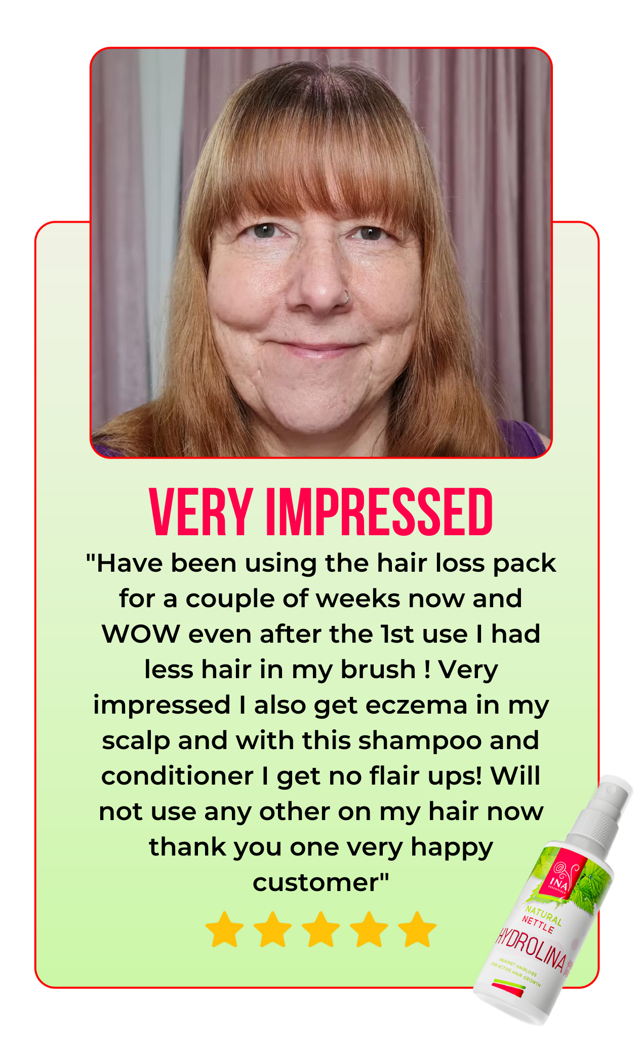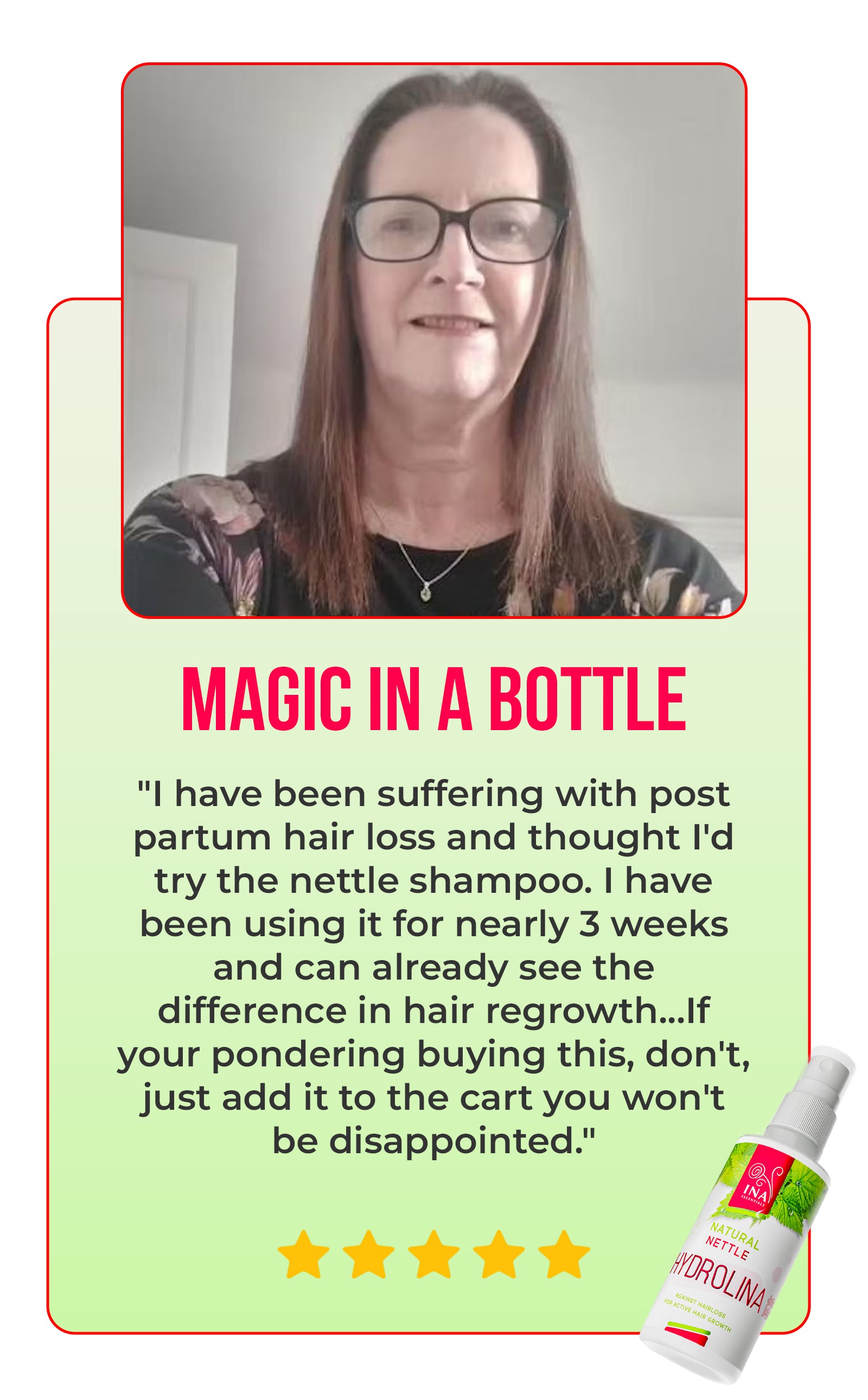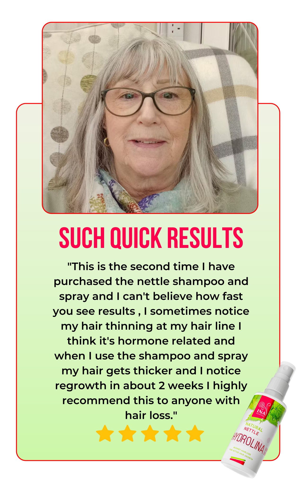 Wild Nettle Water - Hydrolina (150ml) is not just a pretty bottle - real customer reviews prove its effectiveness. With an impressive result of over 90% user satisfaction, our product shows its power in fighting hair loss and oily scalp, while improving their overall health. Don't just take our word for it, read the real stories of our customers .